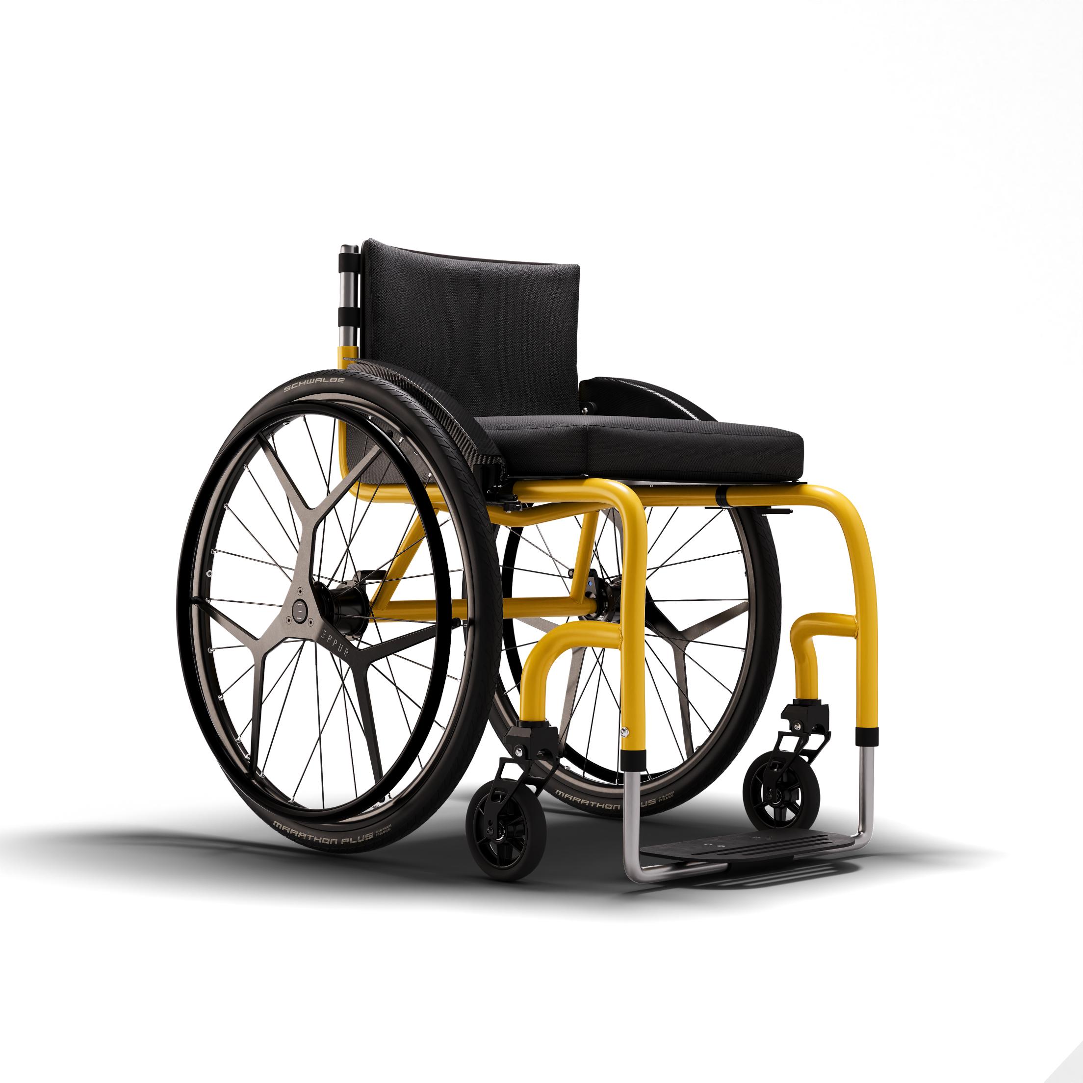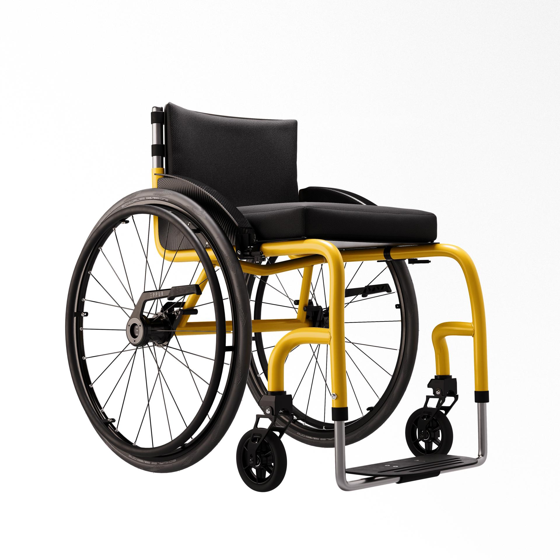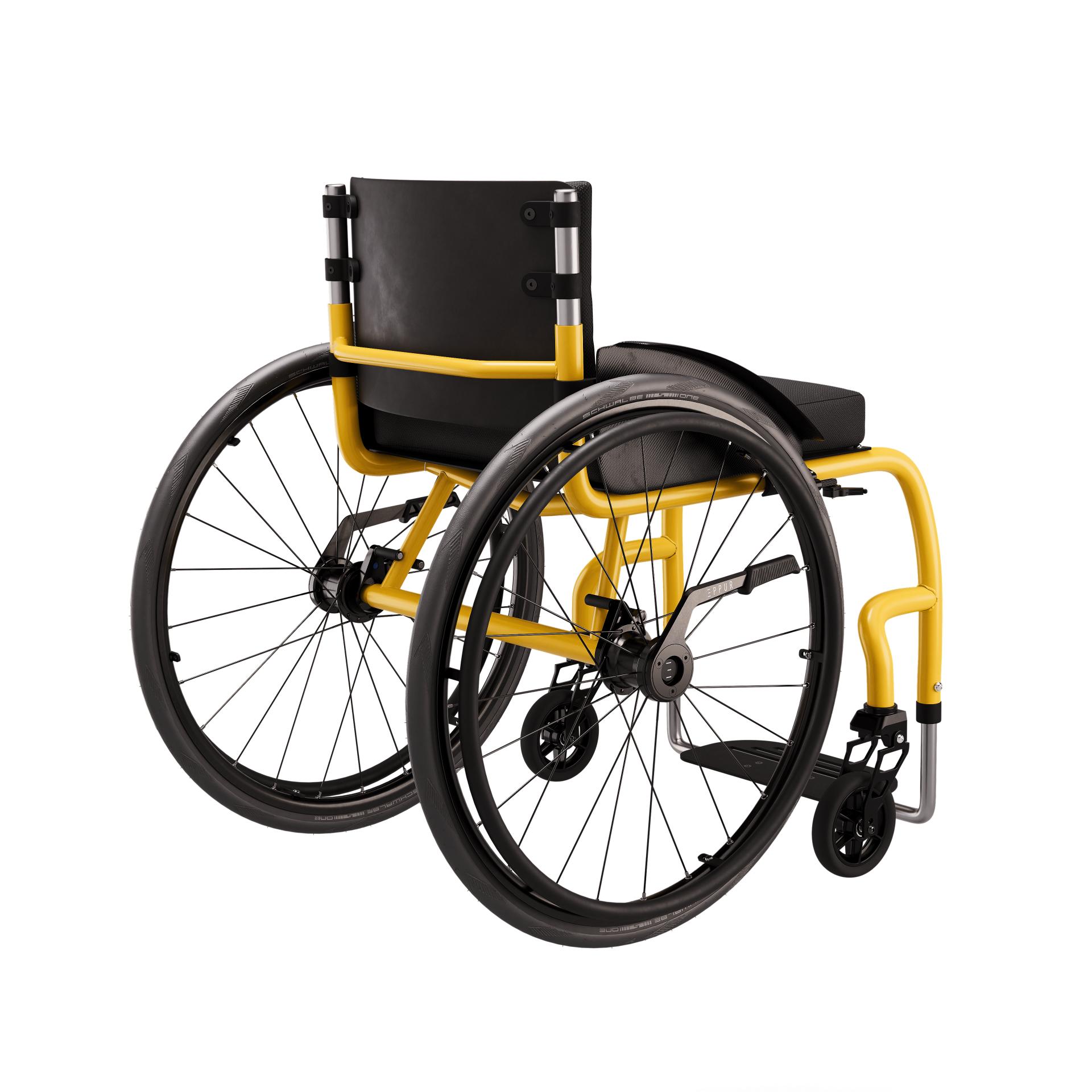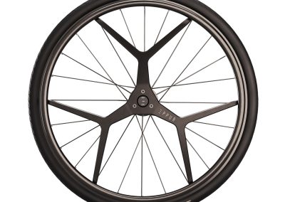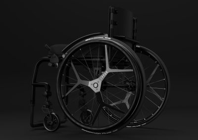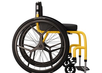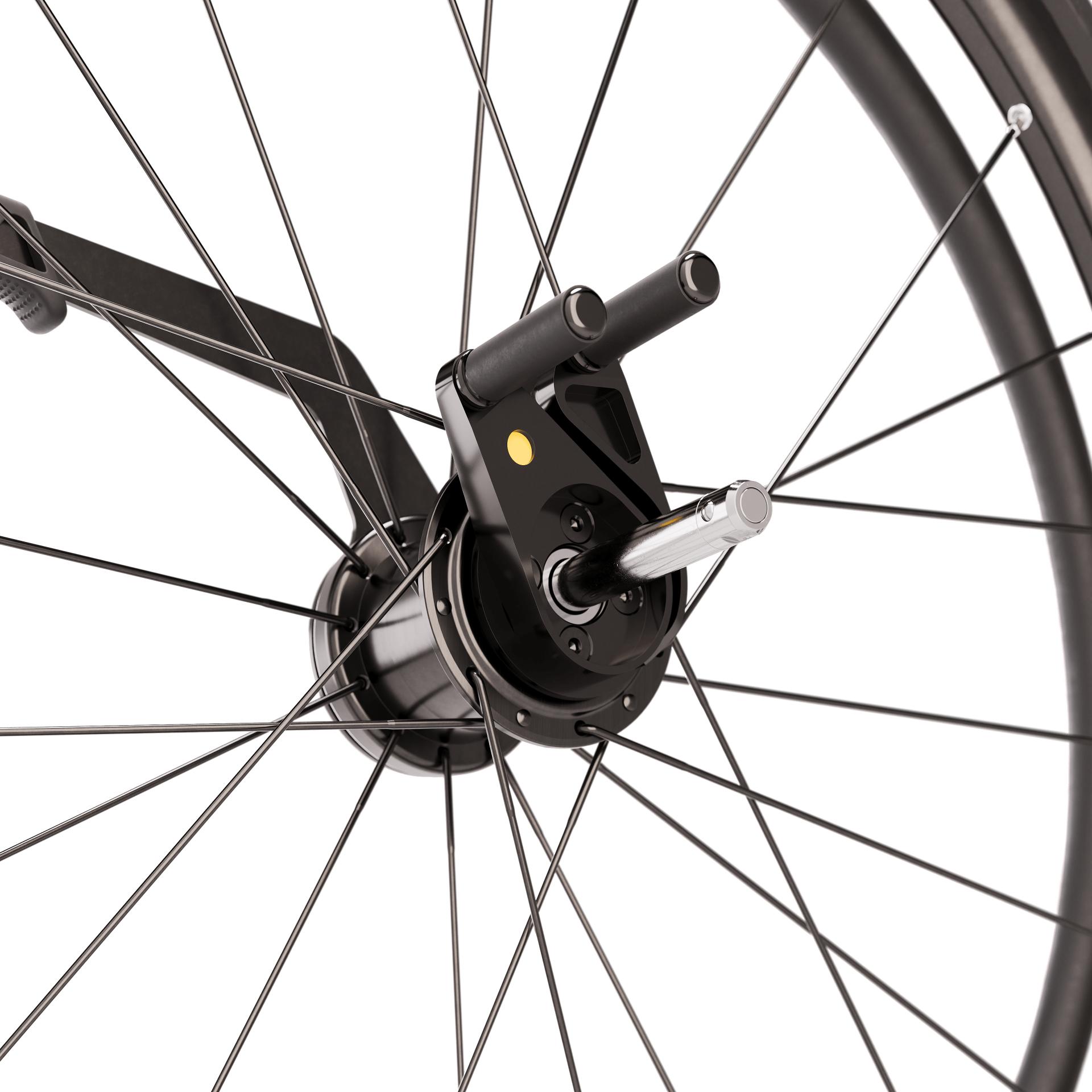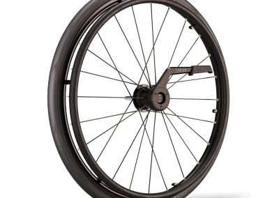 Skeed is a pair of wheels that incorporates a unique braking system at its center. A fixed operating lever, directly connected to the hub, allows you to slow down and immobilize your wheelchair, even without gripping !