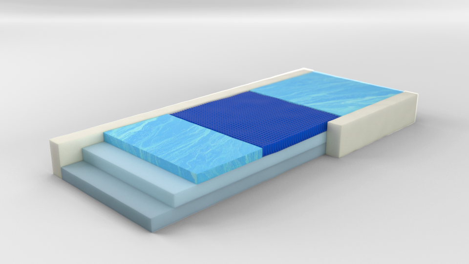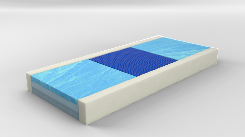 This mattress features a high-density polyurethane foam base, 5 lb. memory foam core and an incorporated foam perimeter border for help with transfers and ADLs. This option offers a 1” gel insert to target protection to the coccyx area with the reduction of peak pressure points.